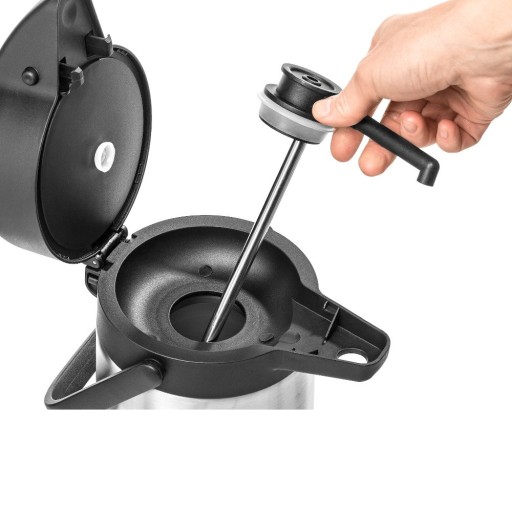 Termos cateringowy z pompką marki Forgast wykonany ze stali nierdzewnej. Pojemność 2,5 l. Wkład termosu - stal nierdzewna, pokrywa i uchwyt z czarnego tworzywa. Termos bardzo popularny i wygodny w użytkowaniu. Idealny do cateringu na gorącą wodę lub gotowe napoje typu kawa czy herbata.