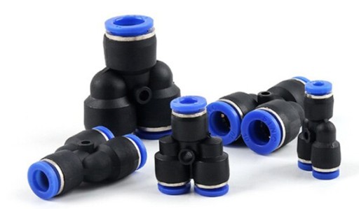Trójnik wtykowy typu Y - łącznik przelotowy do instalacji pneumatycznych pozwala na proste i szybkie łączenie przewodów pneumatycznych typu PU, PA, PE.