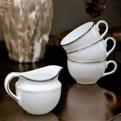 Florian to najwyższej jakości cienka, delikatna porcelana kostna. W skład kolekcji wchodzą naczynia w przepięknym, mlecznym kolorze, zdobione ręcznie platynową linią na karbowanych obrzeżach. Linia Florian zaprojektowana została dla osób ceniących prostą elegancję oraz komfort użytkowania. Okrągły fason i delikatne zdobienie sprawiają, że kolekcja świetnie komponuje się zarówno z klasyczną aranżacją stołu, jak i ultranowoczesną. Duże talerze oraz pojemne filiżanki i kubki z wygodnymi uchwytami są bardzo praktyczne. Zastawa Florian została stworzona z myślą o samodzielnej kompletacji - większość pozycji można więc dokupić pojedynczo, tworząc dowolne zestawy według indywidualnych potrzeb.
