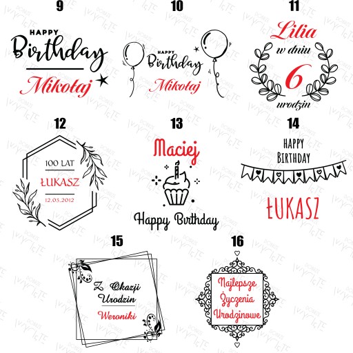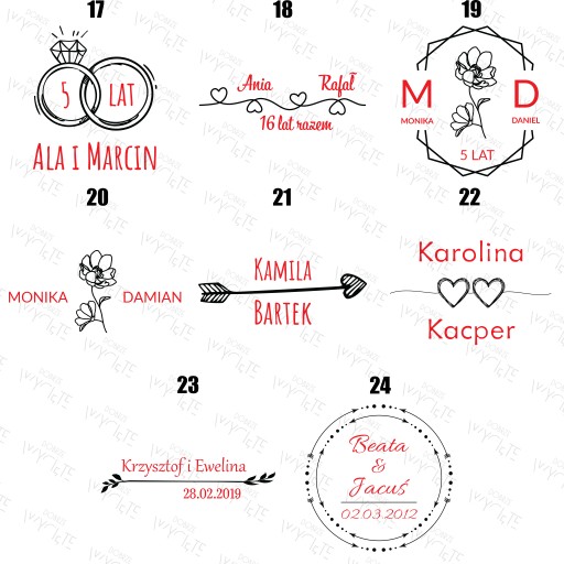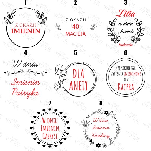 Oferujemy także możliwość zastosowania Twojej własnej grafiki! Prześlij swoją grafikę w formacie .ai, .cdr., .eps, .pdf. Istnieje możliwość umieszczenia niewielkich grafik uzupełniających do przesyłanych treści np. kształty florystyczne, obramowania, grafiki okolicznościowe np. ślubne, urodzinowe itp.