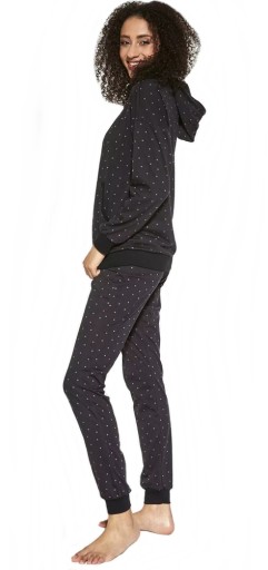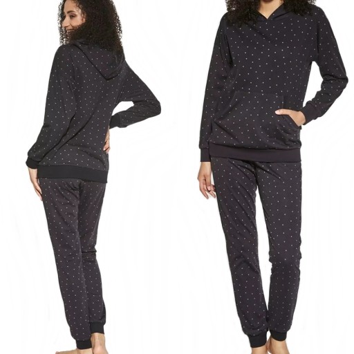 Piżama wykonana z czarnej bawełny w delikatne szare kropki.