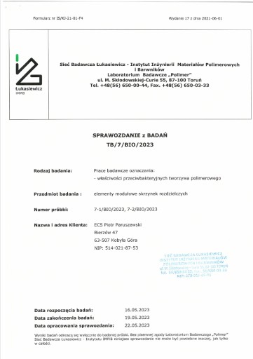 - Brak migracji dodatku mikrobiologicznego z warstwy wewnętrznej potwierdzony badaniami