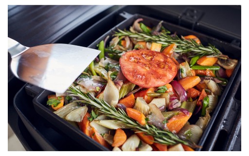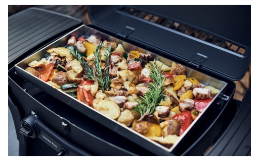 - Dzięki zamykanej pokrywie z wbudowanym termometrem grill służy również jako piekarnik