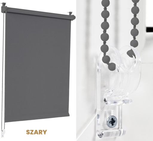 - Montaż: za pomocą uchwytów zaciskowych bez wiercenia (bezinwazyjnie) lub opcjonalnie z wierceniem na ramie okiennej, ścianie lub suficie