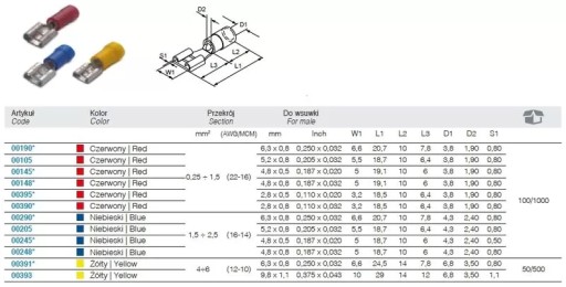 Nasuwka izolowana z antywibracyjną tulejką miedzianą 2.5-6.3/0.8 pvc zakres 1.5-2.5mm2 niebieska sztuk