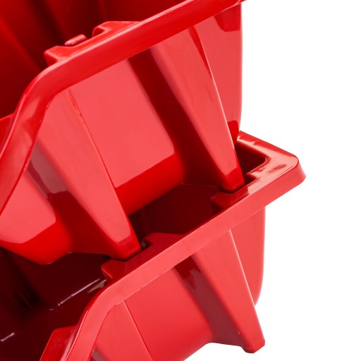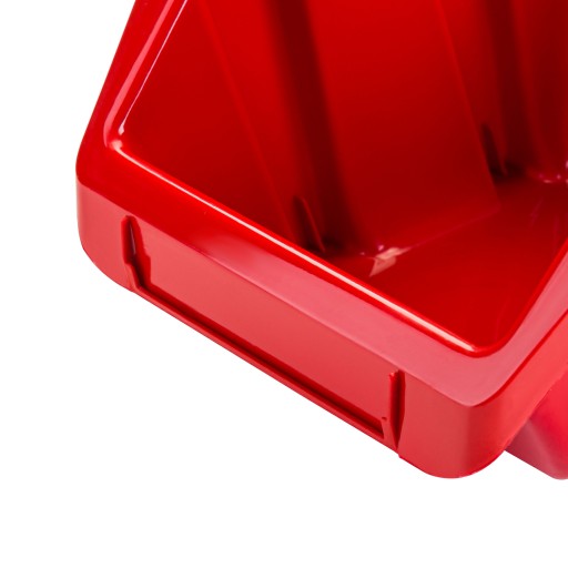 Ergonomiczny kształt pojemników umożliwia ich piętrowanie. Zastosowany stelaż umożliwia również układanie ich w stos, dzięki czemu możemy znacznie zaoszczędzić przestrzeń przy stanowisku, usprawnić dostęp do drobnych elementów. Przemyślana konstrukcja pozwala na wkładanie pojemników jeden w drugi. Otwarty front zapewnia łatwy dostęp do zawartości pojemnika. Pojemniki można wieszać na tablicach narzędziowych dostępnych w naszej ofercie.