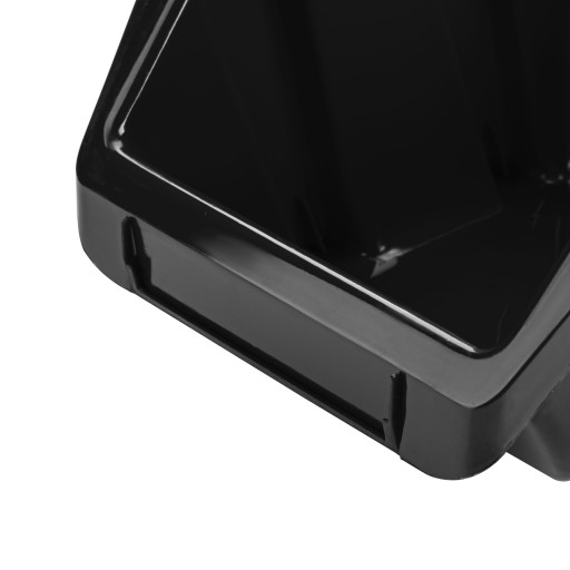 Ergonomiczny kształt pojemników umożliwia ich piętrowanie. Zastosowany stelaż umożliwia również układanie ich w stos, dzięki czemu możemy znacznie zaoszczędzić przestrzeń przy stanowisku, usprawnić dostęp do drobnych elementów. Przemyślana konstrukcja pozwala na wkładanie pojemników jeden w drugi. Otwarty front zapewnia łatwy dostęp do zawartości pojemnika. Pojemniki można wieszać na tablicach narzędziowych dostępnych w naszej ofercie.