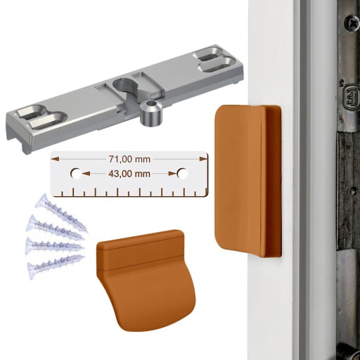 Prosty montaż gwarantuje bezproblemowe zamocowanie uchwytu w ramie drzwi oraz w skrzydle. Dołączone do zestawu wkręty można wkręcić w materiał PVC lub aluminium i od razu skorzystać z funkcjonalności, jak zapewnia urządzenie.