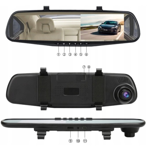 ✅ WIDEOREJESTRATOR Z KAMERĄ COFANIA W LUSTERKU