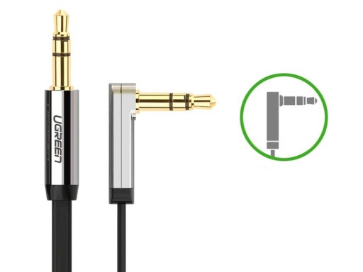Płaski przewód audio AUX od firmy Ugreen zakończony z jednej strony kątową wtyczką 1m