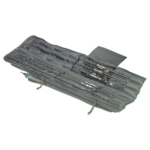 Ten przemyślany w najdrobniejszych szczegółach pokrowiec zapewnia miejsce dla 3 wędek z kołowrotkiem + 3 bez kołowrotków. Specjalne rozplanowanie wytrzymałej wyściółki gwarantuje bezpieczny transport naszych wędzisk. Boczne kieszenie zapewniają wystarczającą ilość miejsca na podbierak, podpórki czy parasol. Wyposażony w 3-częściową aluminiową sztycę usztywniającą pokrowiec.