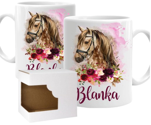 Zestaw Poduszka + Kubek z motywem KONIA KOŃ BORDO + DOWOLNE IMIĘ