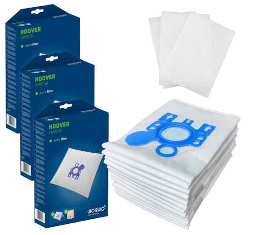 12 worków syntetycznych + 3 filtry silnika przeznaczone do odkurzaczy domowych HOOVER