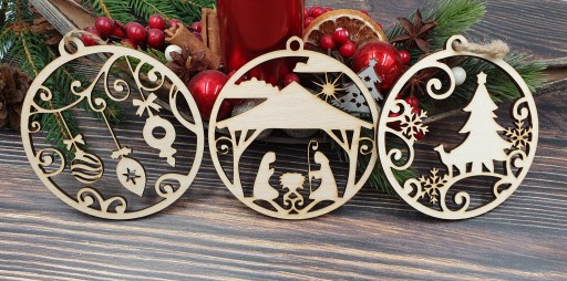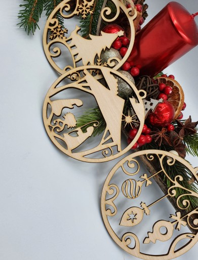 Деревянная безделушка. Набор из 3 шт. Рождественское украшение.