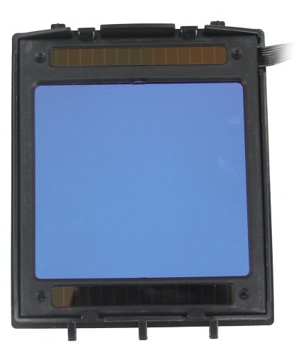 Automatyczna przyłbica wyposażona jest w filtr spawalniczy, który zmienia stopień zaciemnienia.
