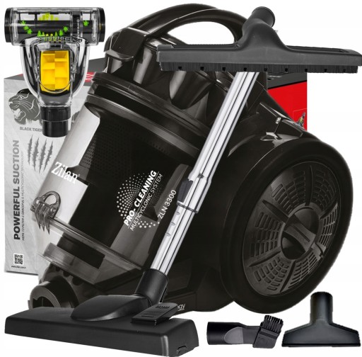 Odkurzacz ZILAN BLACK TIGER 3300 to idealne urządzenie do utrzymania czystości, przydatne w każdym domu. MOCNY, TRWAŁY I ENERGOOSZCZĘDNY, bezworkowy odkurzacz z technologią Hypercyclone. Cechuje się niesamowitą skutecznością oraz wytrzymałością. Ten model sprawdzi się jako PODSTAWOWY ODKURZACZ DO DOMU, do dokładnego odkurzania podłóg, paneli, płytek, terakoty, dywanów, wykładzin itd.