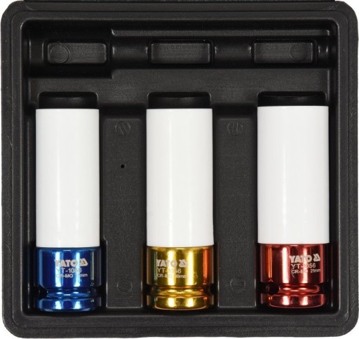 - Nasadki udarowe Yato do felg aluminiowych, kpl 17, 19, 21 mm