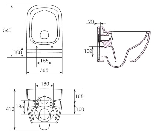 - Elementy zestawu: Miska, Deska, Zestaw Montażowy