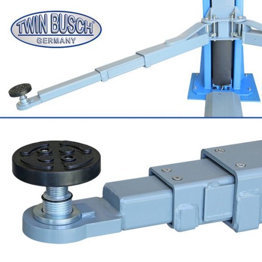 Ten profesjonalny, a za razem uniwersalny podnośnik dwukolumnowy niemieckiej firmy Twin Busch ma udźwig 5t i 3-stopniowe teleskopowe ramiona podnoszące, dzięki czemu można podnieść wszystko z małego samochodu, transportera lub kampera z długim rozstawem osi.
