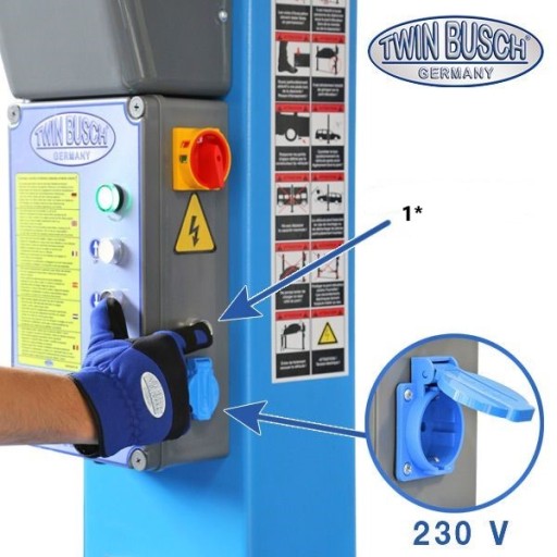 Przycisk zapobiegający podniesieniu, do precyzyjnego opuszczania podnośnika bez wcześniejszego automatycznego podnoszenia. A także praktyczne gniazdo 230 V bezpośrednio na skrzynce sterowniczej.