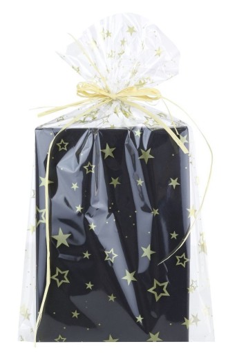 - Wzór - ŚWIĄTECZNE - torebki przezroczyste z dwustronnym pięknym nadrukiem świątecznym w złote gwiazdki