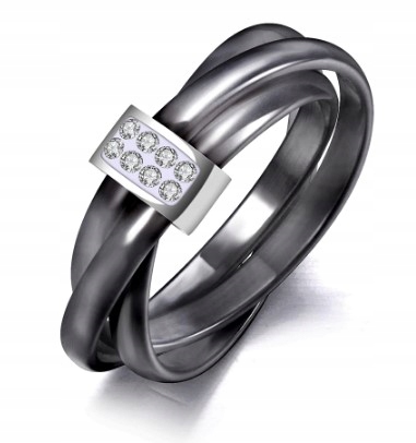 Pierścionek składa się z trzech przeplatanych niezależnych czarnych ringów.