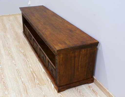 Komoda RTV kolonialna z rzeźbieniami wykonana w Indiach w 100% z litego drewna akacji indyjskiej.