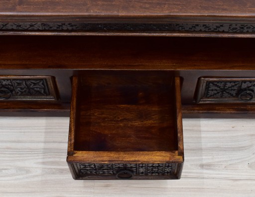 Komoda RTV kolonialna z rzeźbieniami wykonana w Indiach w 100% z litego drewna akacji indyjskiej.