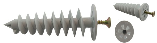 Wkręcany łącznik spiralny do mocowania lekkich elementów (max do ok. 5 kg na element) do styropianu, wełny - podłoża izolacyjnego i tynku.