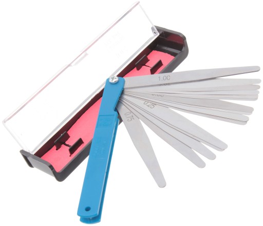 OPIS: SZCZELINOMIERZ O ZASTOSOWANIU UNIWERSALNYM ZARÓWNO DO MOTOCYKLI, MOTOROWERÓW, QUADÓW ATV JAK I SAMOCHODÓW. MAMY DO DYSPOZYCJI 17 MIAR ZACZYNAJĄC OD 0.02mm A KOŃCZĄC NA 1.00mm