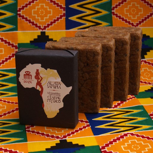 Czarne mydło Alata Samina - wytwarzane tradycyjnymi metodami w kotłach z prażonych łupin owoców kakaowca, kokosu oraz masła shea i oleju kokosowego. Bardziej organiczne mydło już nie istnieje.