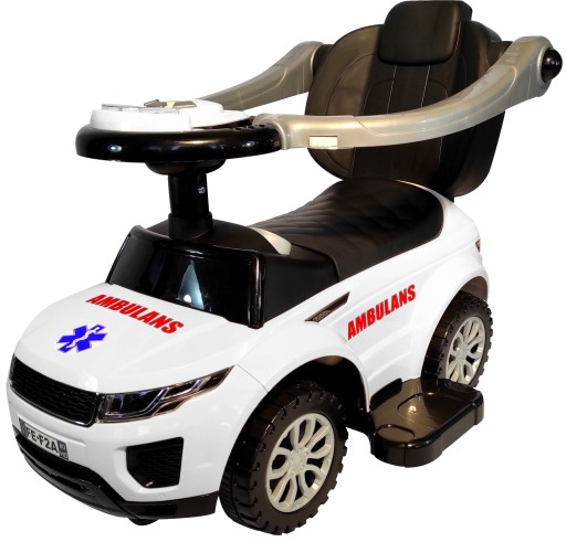 - Opcja 4w1 umożliwiająca używanie pojazdu jako jeździk, chodzik pchacz lub KARETKA POGOTOWIA dla starszego dziecka sprawia, że zabawka ROŚNIE wraz z nim.