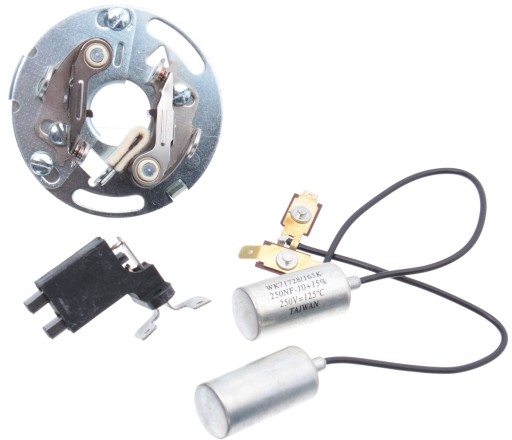 OPIS: FABRYCZNY ZESTAW NAPRAWCZY ZAPŁONU 12V. W SKŁAD ZESTAWU WCHODZI PŁYTKA ZAPŁONOWA, 2X PRZERYWACZ ZAPŁONU (PLATYNKI) 2X KONDENSATOR + SZCZOTKOTRZYMACZ. REWELACYJNA JAKOŚĆ WYKONANIA.