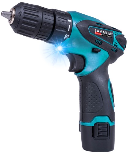 Wkrętarka popularnej marki BAVARIA posiada wytrzymałą baterię litowo-jonową (Li-Lon) o mocy 18V.