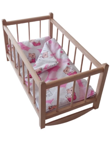 DREWNIANA KOŁYSKA Z KOMPLETEM POŚCIELI (3 elementy)