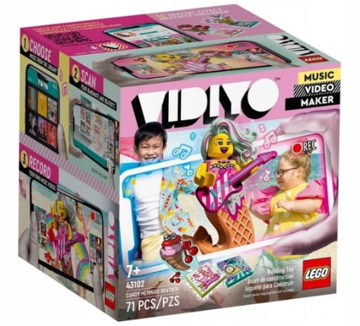 - Zestaw LEGO® VIDIYO™ Candy Mermaid BeatBox (43102) pomoże Ci zachęcić dzieci do tworzenia własnych teledysków. Znajdziesz w nim minifigurkę syreny z gitarą, 14 losowych BeatBitów i dwa specjalne BeatBity.