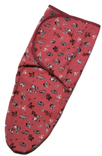 Dostępny w różnych kolorach i wzorach, na tej aukcji dostępny: wzór w pieski na bordowym tle.