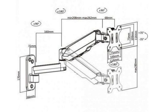 - Uchwyt ścienny do TV, LED/LCD ze sprężyną gazową, umożliwia łatwą zmianę położenia wyświetlacza bez użycia narzędzi