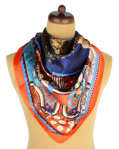 Lekka, przyjemna w dotyku apaszka damska, ozdobiona eleganckim i wyrazistym wzorem.