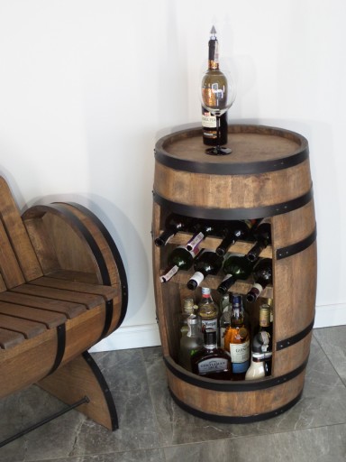 Beczka – barek z półką na wino to wyjątkowy mebel zapewniający unikalną dekorację wnętrza połączoną z praktycznym zastosowaniem. Każda beczka jest ręcznie robiona zaczynając od cięcia desek w tartaku kończąc na ręcznym ściąganiu bednarek nadających beczce jej wyjątkowy wypukły kształt. Barek mieści ok. 30 butelek (w zależności od kształtu i rozmiaru).