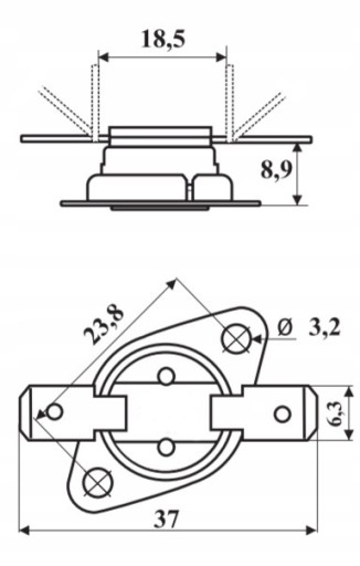 Termostaty wyposażone są w poziome wyprowadzenia konektorowe (6,3 x 0,8 mm) oraz posiadają ruchomą obejmę, ułatwiającą montaż do płaskich powierzchni.