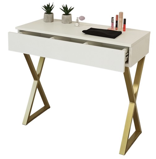 МАТОВЫЙ БЕЛЫЙ СТОЛ ДЛЯ ЧЕРТЕЖА НА ЗОЛОТЫХ НОЖКАХ, Х 90 СМ