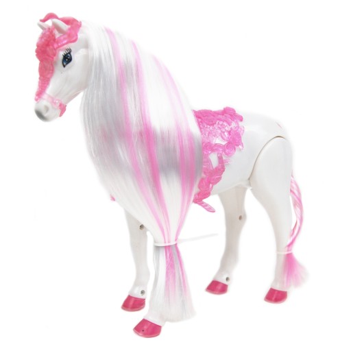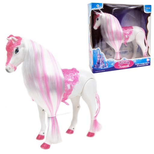 Interaktywny konik Lodowej Księżniczki chodzi i wydaje odgłosy jak prawdziwy koń.