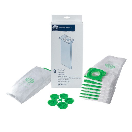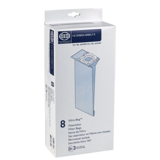 [6629ER] Komplet zawiera 8 sztuk, 3-warstwowych worków filtrujących z kapslami Ultra Bag™ o poj. 3l do odkurzaczy serii SEBO Airbelt K.