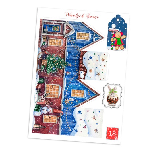 Gratis. Na każdym arkuszy z domkiem są zawieszki do prezentów.
