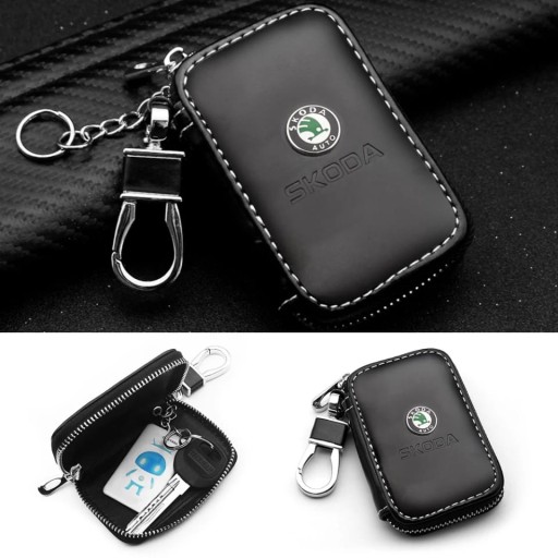 Etui , Pokrowiec "BRELOK" na kluczyki z LOGO EBLEMATEM " SKODA " w wersji BLACK