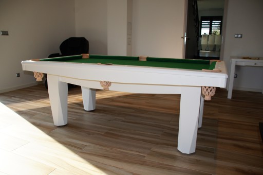 - Konstrukcja produkowanych przez naszą firmę modeli stołów jest tak przemyślana aby w żaden sposób klient nie dotykał nogami obrysu stołu. Gwarantujemy ,że w połączniu z blatem biesiadnym tworzy idealny stół jadalny. Jeżeli chodzi o konstrukcję dolną pod koroną jest ona cofnięta tak abyśmy swobodnie mogli usiąść i nie dotykać nogami dolnej deski. W załączonych zdjęciach oferty może tego nie widać ale tak właśnie jest. Konstrukcja stołów produkowana jest od 1995 roku tak więc z naszym doświadczeniem i podpowiedzią klientów staranie została ona poprawiona i doprowadzona do tego aby idealnie połączyć stół bilardowo – jadalny.