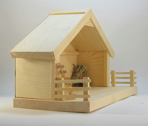 Tradycyjna szopka w której najlepiej prezentują się figurki wysokości 8-11 cm.