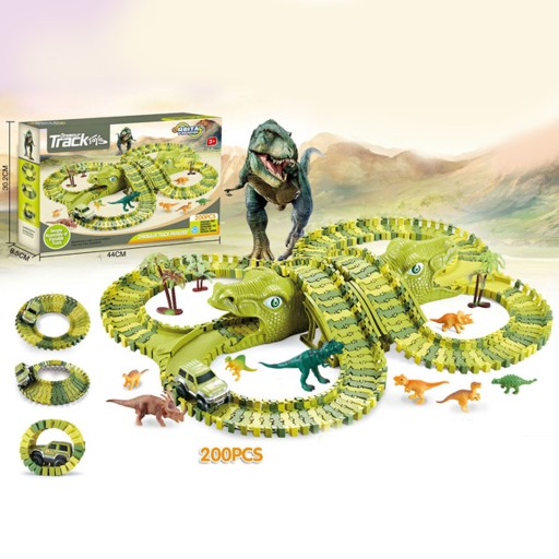 - BARDZO DUŻY ZESTAW - zestaw składa się z 200 elementów toru oraz 29 elementów parku, które maksymalnie uatrakcyjniają zabawę i pozwalają zbudować duży tor z ciekawymi odcinkami do zabawy oraz krajobrazem przypominając prawdziwy świat prehistorycznych dinozaurów.