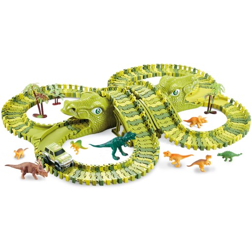 Tor wyścigowy DINO PARK z trasą dla autka to wymarzona zabawka dla każdego dziecka zafascynowanego dinozaurami, a także wyścigami. Pozwala na ciekawe spędzenie czasu, zwłaszcza podczas niesprzyjającej pogody. Elastyczność toru pozwala ułożyć kilka mniejszych, np. pętelek, bądź jednego, długiego toru. Atrakcyjności zabawce dodają akcesoria, które sprawią, że dziecko poczuje się jak gość prawdziwego parku dinozaurów.